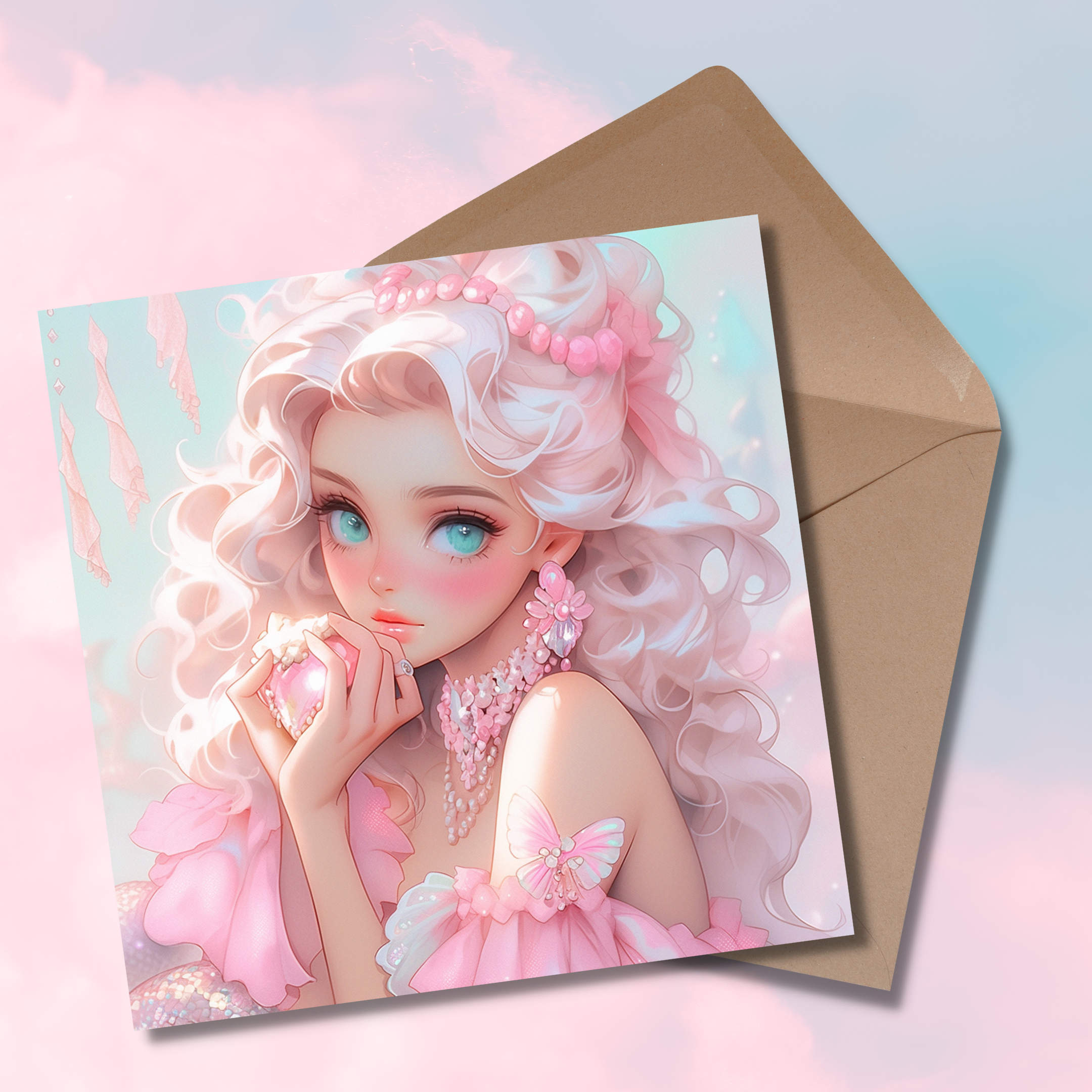 This beautiful Greetings Card has been produced from a unique AI generated image by Pretty Stickies.